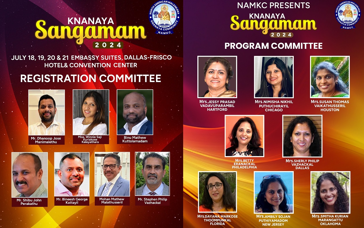 ഹൂസ്റ്റണ്: ആര്ച്ച്ബിഷപ് കുറിയാക്കോസ് മാര് സേവേറിയോസ് മെത്രാപ്പോലീത്തായുടെ ആശീര്വാദത്തോടെ ക്നാനായ സംഗമം-2024 ഡാളസിലുള്ള ഫ്രിസ്കോയില് സ്ഥിതി ചെയ്യുന്ന എംബസി സ്യൂട്ടില് ജൂലൈ 18, 19, 20, 21 തീയതികളില് അതിവിപുലമായ രീതിയില് നടത്തുന്നതിനുള്ള ക്രമീകരണങ്ങള് ആരംഭിച്ചു.